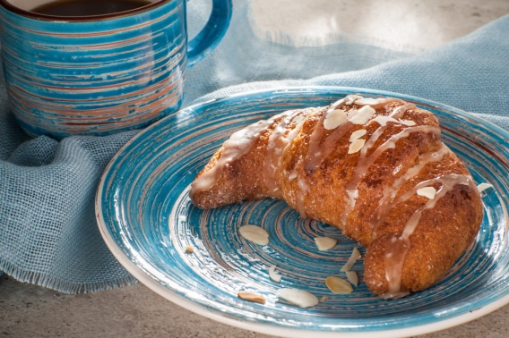 - rogal z pastą z blanszowanych migdałów z ekologicznym cukrem kokosowym oraz prażonymi płatkami migdałów..